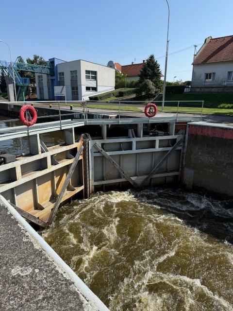 Zdymadlo na významném labském plavebním úseku překonává výškový rozdíl hladin téměř 3 metry pomocí dvou plavebních komor. Během prohlídky jsme sledovali v reálném čase jejich napouštění a vypouštění při průjezdu osobních lodí.