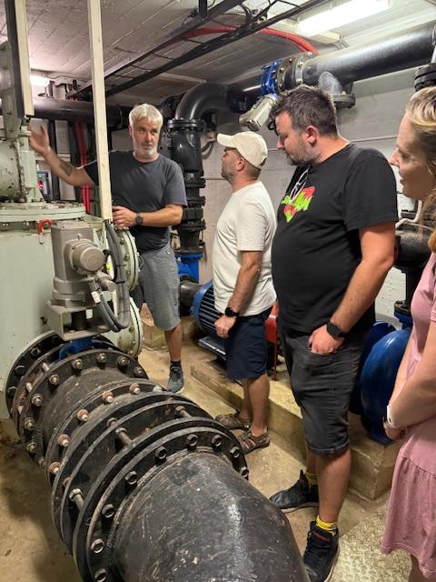 Druhá část programu zahrnovala návštěvu velícího střediska a technických prostor pod jezem, které vedou až k vodní elektrárně s Kaplanovými turbínami. Celkový instalovaný výkon elektrárny činí 7,2 MW, roční výroba přesahuje 32 GWh, což odpovídá průměrné spotřebě více než 10 000 domácností.